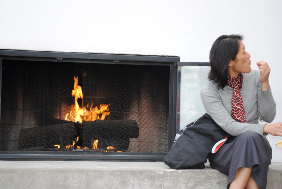 At the Standard poolside fireplace.