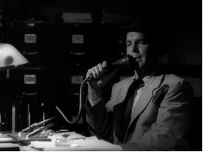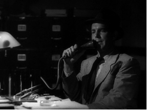 The dictaphone was Billy Wilder (director/screenwriter) and Raymond Chandler’s (screenwriter) deliberate addition to the filmscript; James M. Cain’s 1943 novella was essentially Neff’s scrawled confession to the reader of his almost-perfect plot to kill Phyllis’s husband and reap double insurance rewards. The introduction of the dictaphone transformed the standard noir flashback voiceover into an even-more intimate exchange of anxious aspiration, guilty pleasure, and homosocial desire channeled through Neff’s tense vocal grain and fierce grip on the machine’s cord. A familiar office machine made strange by Neff’s late-night admissions, the dictaphone mediates the entire film, transforming the audience into eavesdroppers, listening in to an act of recording made for Keyes’s ears only. After stumbling into his office and jamming a cylinder into the machine, Neff begins, sternly: “Office memorandum. ‘Walter Neff to Barton Keyes, Claims Manager, Los Angeles, July 16, 1938. Dear Keyes: I suppose you’ll call this a confession when you hear it. Well, I don’t like the word ‘confession.’ I just want to set you right about something you couldn’t see because it was smack up against your nose.” Sound, in the form of Neff’s heated breath pressed through the dictaphone’s curves and into our waiting ears, is the perfect device to exorcise the unseen desire in a film that tests the boundaries of darkness.
