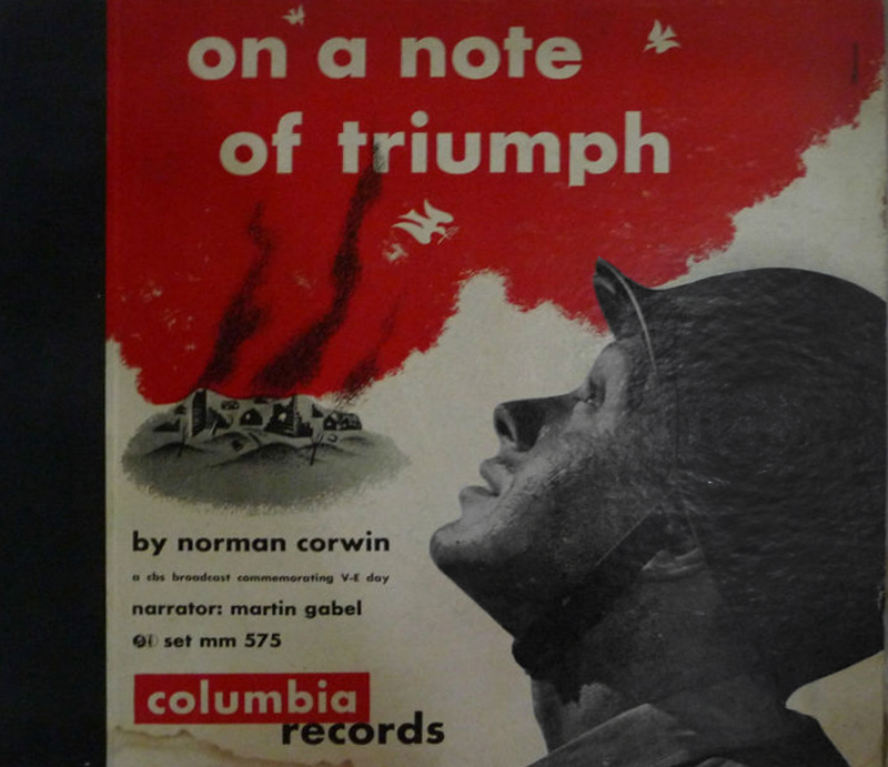 Cover art for 1945 Columbia Records release of Corwin’s “On a Note of Triumph.” Not just grudgingly accepted loss leaders, sustaining programming in the CBS model could be leveraged across media platforms as sources of direct profit, while bolstering the larger Columbia brand.
