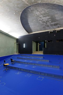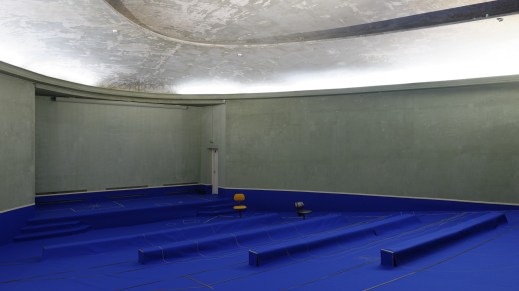 Nestled deep in a corner of Paris’ Palais de Tokyo, Anne Le Troter’s sound piece “Bulleted List” invites the museum’s visitors to explore the social similarities that people verbally express in response to cold calls. Le Troter’s first solo show to be on display in Paris, the work invites the audience to sit inside a modified cinema amphitheater as the sounds of recorded people answering survey queries echo throughout the sloped room. The seating arrangement inside the exhibition mirrors the cubicle-style setup of a call center, though each “station” consists solely of an outline designating where to sit and a coordinating amplifier. Both the questions and answers in the sound piece are produced by real survey callers; each voice sounds polished, poised and mechanized from years of vocal experience, revealing the automated nature that comes with the territory of making a scripted call. The result of each recorded voice unto the listener is akin to standing in the center of a symphony, with vocal patterns as punctuated as a visual, typographic list.
