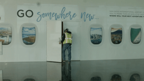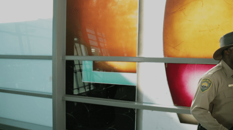 As I prepare to film at SAN, I’m sent mixed messages. Initially, a curator tells me I’ll be granted access to shoot in post-checkpoint areas of the airport, areas I learn that security workers call “the sterile zone.” Shortly before my first shoot, I’m told that, actually, it’d be too much work to get me clearance. I’m restricted to what are called “public” spaces, pre-security, outside the sterile zone.