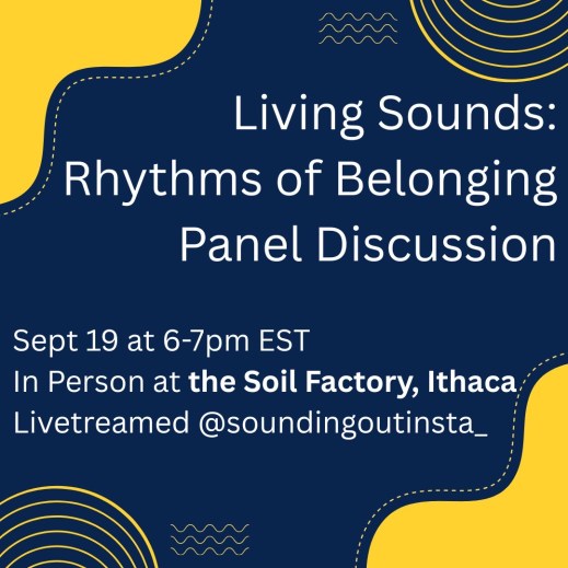 It’s been a minute for the SO! podcast but we are glad to be back–however intermittently–with a podcast episode that shares a discussion between women sound studies artists and scholars. The panel “Living Sounds: Rhythms of Belonging,” was held on September 19 at 6-7pm EDT at The Soil Factory arts space in Ithaca, New York. Moderator Jennifer Lynn Stoever, sound studies scholar and our Ed. in Chief, talks with four women sound artists about their praxis: Marlo de Lara, Bonnie Han Jones, Sarah Nance and Paulina Velazquez Solis.. . .”