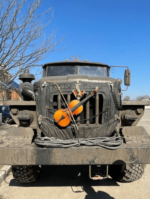 An outdoor concert in Lviv on March 26th was cut short due to air raid sirens. The clip of the scene is astoundingly calm as the musicians and audience nod in acceptance and leave quietly to find cover before missile attacks. A month into the war, such activity had become part of everyday life, and outdoor concerts continued to take place on Kyiv’s Maidan Square, in Odesa and in Lviv. In addition to collective gatherings, more private and solo musical moments occured in homes and on the heavily bombed streets, as exemplified in this video of a musician playing ‘My Dear Mother’ by Maiboroda in Kharkiv.
