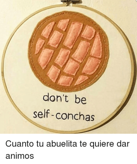 Using the name of a popular Mexican sweet bread (conchas) as a substitute for “conscious” upsets Western, phonetic understandings of “scious” in favor of a phonetic, Mexican stand-in. Concha, a sea shelled shaped sweet bread, associated with female genitalia and used in digital Latino communities has become a symbol for body positive inclusion; an insistence to not feel “self conchas” when eating (see Nalgona Positivity and SOMAR ATX). These memes privilege an accented listener, a feminist sensibility, as well as a panadería connoisseur.