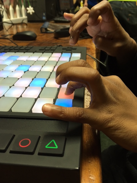 Yaktown Sounds is an emergent space of sound making I curate in and around Pontiac, Michigan. (Pon-ti-Yak = Yaktown, get it?) A postindustrial city halfway between Detroit and Flint, Pontiac is the home of jazz drummer Elvin Jones, hip-hop group Binary Star, and perhaps the most respected battle rapper on the national scene today: JC. Since 2015, I’ve organized an evolving network of artists—usually DJs and beat makers—to make space for youth and community members to play with sound. Of course, play and sound go well together. In Yaktown Sounds, sometimes it’s elementary-age youth at the public library hitting pads and twisting knobs on MIDI controllers until they like what they hear. Other times it’s daddies and daughters scratching a record under the needle to see what comes out. The summer of 2017, I lined up a different musical artist each week from Pontiac and Detroit to visit and share their skills.