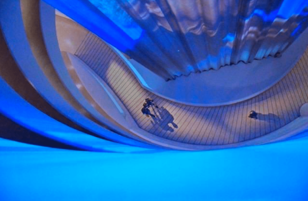 Visitors are encouraged to traverse upward from the bottom of the museum to the top of the building, and vice versa, and explore how Anthem ascends and descends along the spiral path.
