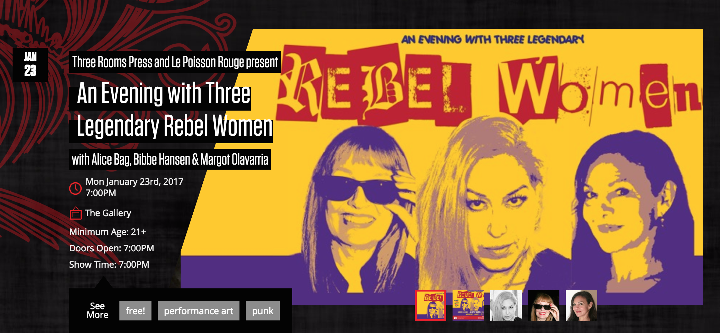 An Evening with Three Legendary Rebel Women at Le Poisson Rouge, January 27, 2017: Margot Olavarria, Bibbe Hansen, and Alice Bag