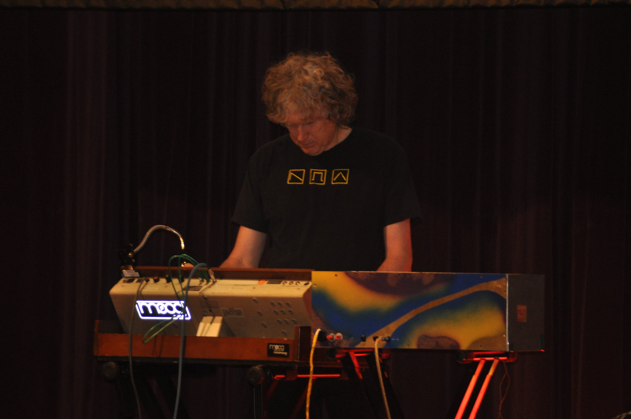 Pinch and Spitznagel formed the group after Spitznagel read Analog Days: The Invention and Impact of the Moog Synthesizer (by Trevor Pinch and Frank Trocco) and realized Pinch also lived in Ithaca. Spitznagel simply looked his name up in the phone book and called him up: “I go, ‘is this Trevor Pinch?’ He said, ‘yes.’ I said, ‘well, you don’t know me, but I just read your book and I love it.’” And then they got together for a beer and have been best friends and collaborators ever since. Once Spitznagel heard about Pinch’s homemade synthesizer, he asked Trevor to try to make something together and it turned out to be a fascinating mixture of analog–Trevor’s synth, Moog Prodigy, and a Minimoog–and James’s digital instruments.
