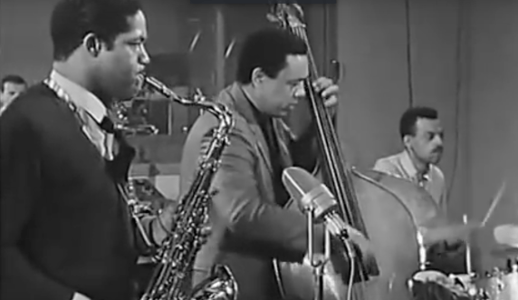 still from Mingus Sextet live in Europe 1964, Eric Dolphy on alto sax, bass clarinet and flute, Johnny Coles on trumpet, Clifford Jordan on tenor sax, Jaki Byard on piano and Dannie Richmond on drums.