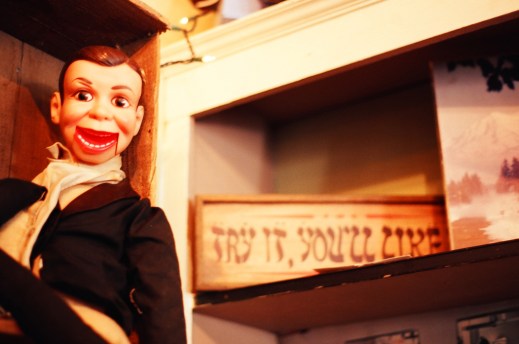 Over an obscenely caloric breakfast, we devised several questions touching upon some keywords and concepts we believe are applicable to both karaoke and ventriloquism, two topics that undermine notions of authorship, source, and origin. In our respective writing about these two subjects, we’ve both occasionally (or more than occasionally) been besieged by the anxiety that our work is melding together into some indeterminate blob. To put it another way: like any other lesbionic duo resisting the “urge to merge” (as so many other queers have warned against), we’ve arrived at that moment in our intimate and intellectual relationship where we’ve decided to sort out whose socks are whose. Somewhat ironically, then, we wrote this post together to establish some of the crucial differences between karaoke and ventriloquism.