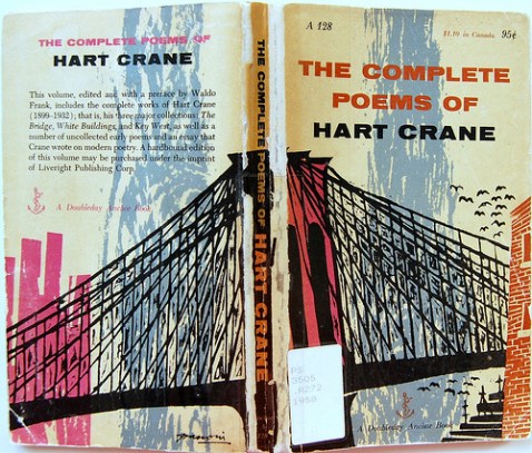 And Vendler on Dove on Hart Crane: “sometimes one wonders whether Dove is being hasty. She speaks, for instance, of ‘the cacophony of urban life on Hart Crane’s bridge.’ But the bridge in his ‘Proem’ exhibits no noisy ‘cacophony’; its panorama is a silent one. The seagull flies over it; the madman noiselessly leaps from ‘the speechless caravan’ into the water; its cables breathe the North Atlantic; the traffic lights condense eternity as they skim the bridge’s curve, which resembles a ‘sigh of stars’; the speaker watches in silence under the shadow of the pier; and the bridge vaults the sea. The automatic—and not apt—association of an urban scene with noise has generated Dove’s ‘cacophony.’”